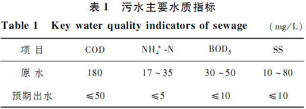 本實驗所用原水為三亞市紅沙污水處理廠的超細格柵出水,主要水質(zhì)指標和預期出水指標如表1所示。